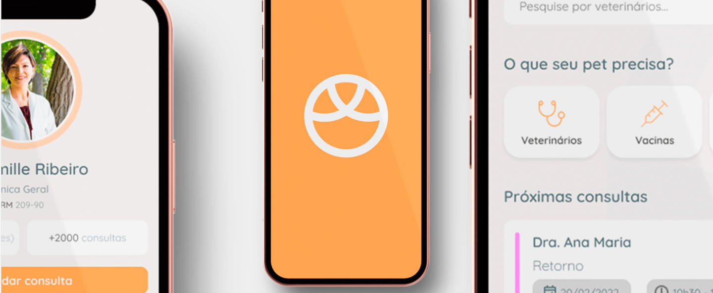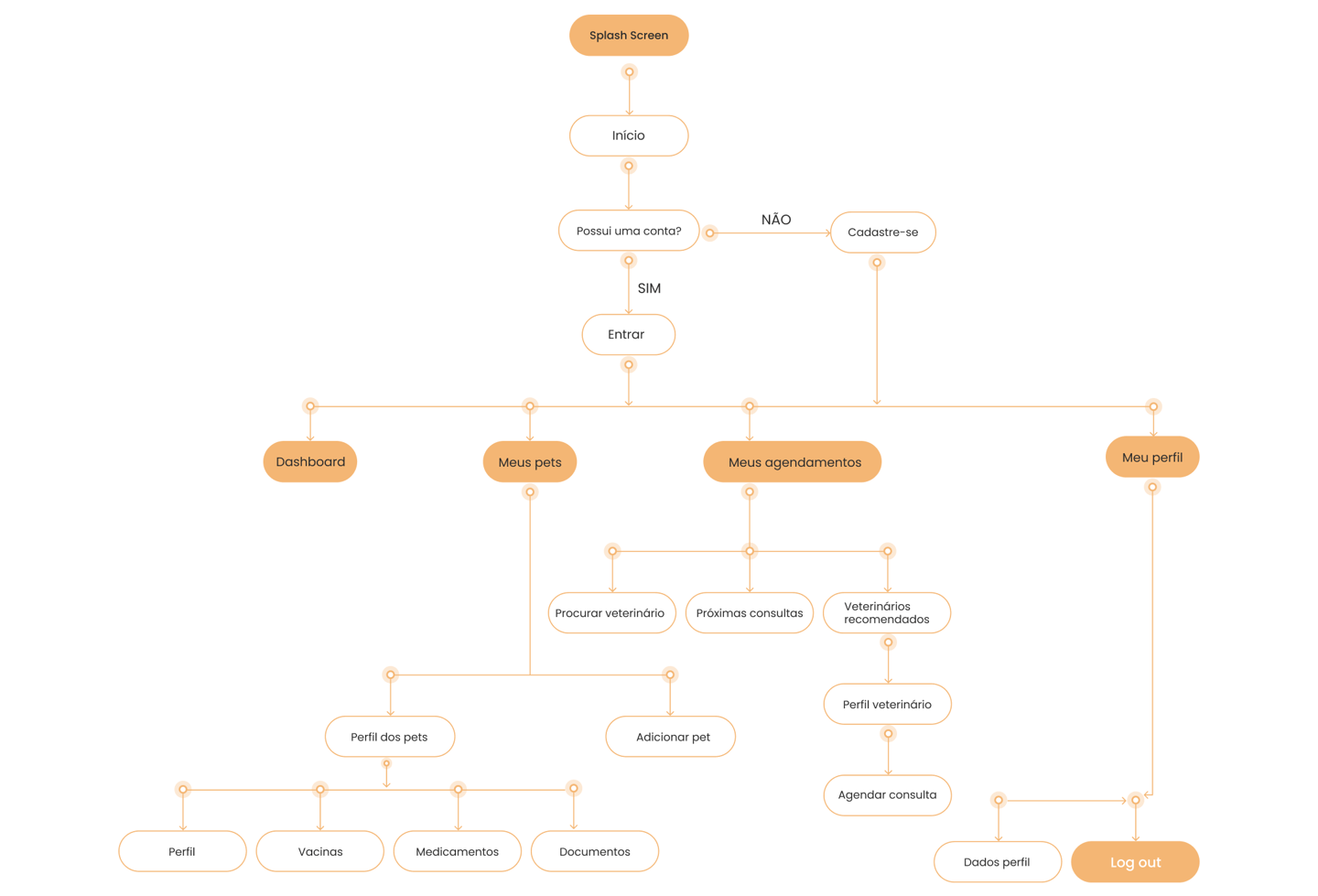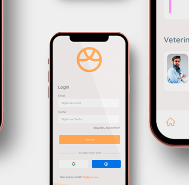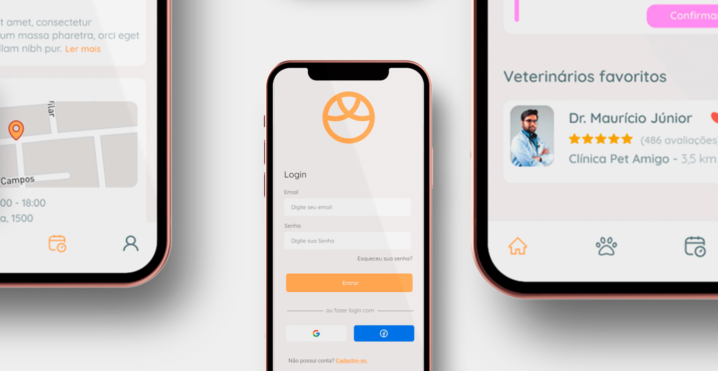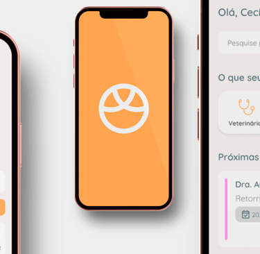 Laranja foi escolhida para transmitir energia, proximidade e estímulo. Essa cor convida à ação — perfeita para elementos interativos como botões de agendamento ou alertas de medicamentos. Além disso, o laranja remete à alegria e à vitalidade dos pets, criando uma conexão emocional positiva.