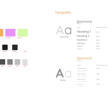 A combinação dessas cores cria uma atmosfera empática e funcional. Nenhuma delas é agressiva ao olhar ou conflitante com acessibilidade — os contrastes foram ajustados para garantir legibilidade e conforto visual em diferentes telas e ambientes. Além das cores, a identidade conta com tipografias arredondadas, que remetem à leveza e simpatia, e ícones ilustrativos, que reforçam o tom amigável do aplicativo sem comprometer a usabilidade.