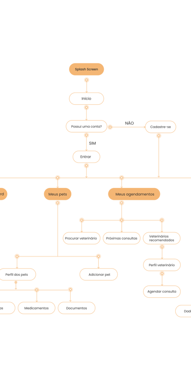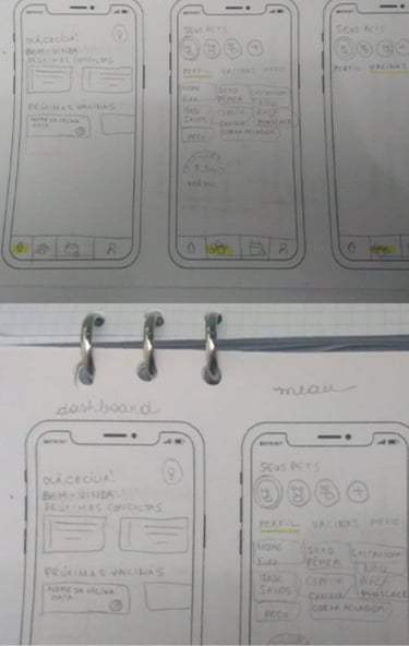 O projeto começou com uma fase intensa de descoberta, onde entrevistei tutores de diferentes perfis: desde os que moram sozinhos com um pet, até famílias com vários animais em casa. O objetivo era entender como eles organizavam a saúde dos seus pets, quais ferramentas utilizavam e onde encontravam dificuldades. Além disso, analisei aplicativos e serviços similares para entender quais soluções já existiam, quais eram seus pontos fortes e o que ainda deixavam a desejar. Esses dados revelaram uma lacuna clara: não existia no Brasil uma ferramenta digital simples, gratuita e confiável que centralizasse o histórico médico dos pets, agendamentos de consultas e controle de medicamentos — tudo isso em um só lugar.